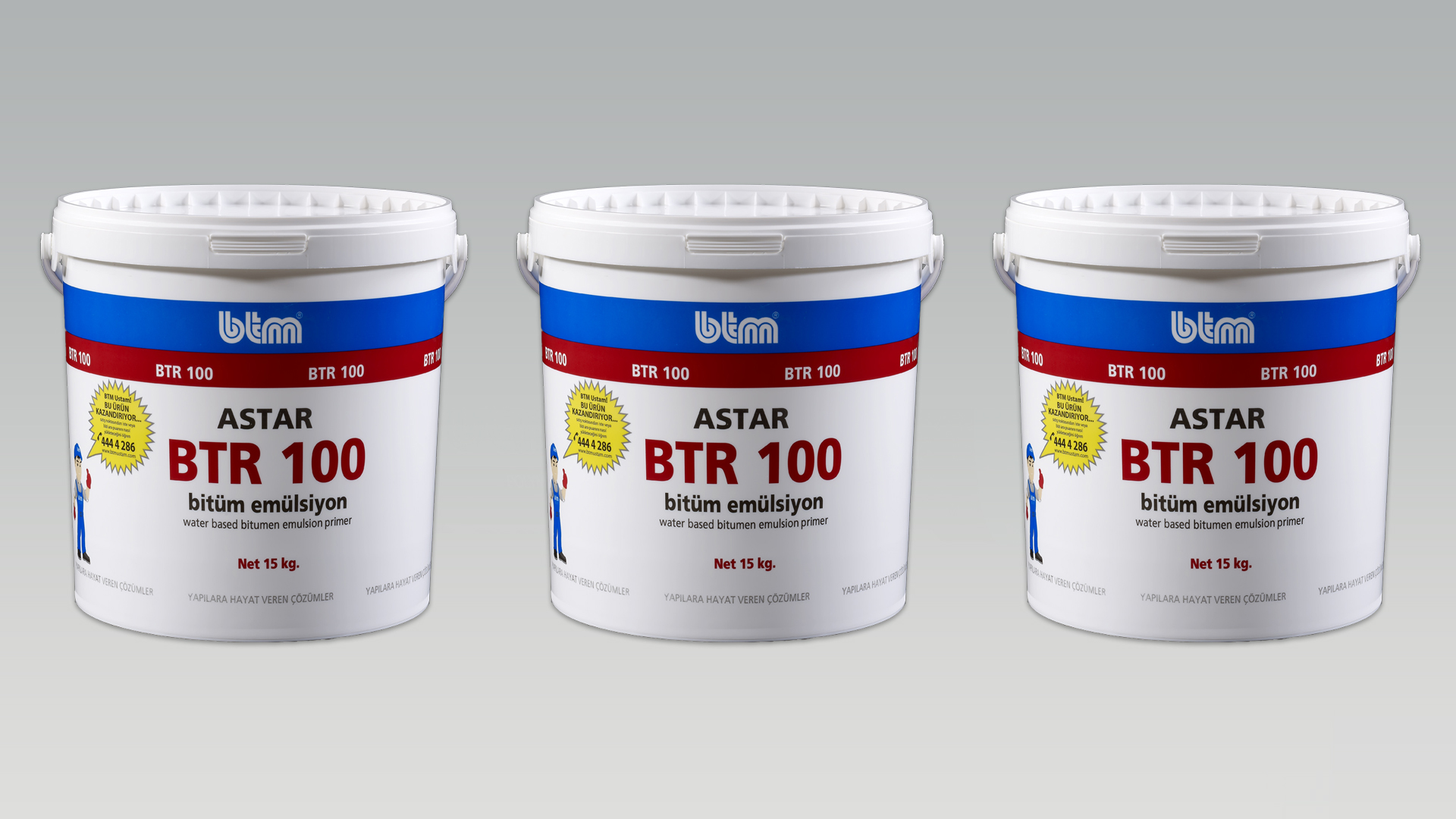Yalıtım yapılacak yüzeylere astar uygulanmadan önce yüzey düzgünlüğü, yüzey kuruluğu ve temizliği ve yeterli bir eğim şapının olduğu kontrol edilmelidir. Bu şartlar sağlandıktan sonra BTM Sürme Esaslı Su Yalıtım Malzemesi BTR 100- Astar metrekareye 400 g olacak şekilde fırça veya tabanca ile yüzeye uygulanır ve tamamen kuruyuncaya kadar beklenir. Gerekli olduğu taktirde %20 oranında su ile inceltilerek de kullanılabilir. Hava koşullarına bağlı olarak yaklaşık 4-5 saatte kurur. İki kat uygulamalarda, ilk kat tam kurumadan diğer kat sürülmemelidir. Su yalıtım örtüsü yapıştırma işi astar tamamen kuruduktan sonra başlatılır.